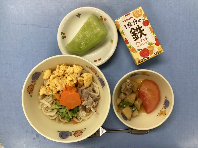ホームきょうの給食 5/25 今日の給食 2024年5月25日 子どもたちが大好きな給食やおやつを毎日紹介しています! 【幼児食・乳児食】 昼食 冷やしうどん 鶏肉と里芋の煮物 トマト 野菜ジュース メロン 3時のおやつ 麦茶 みそおじや 食べる小魚 10時のおやつ(乳児のみ) ジョア