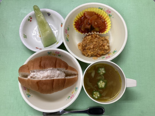 ホームきょうの給食 6/13 今日の給食 2024年6月13日 子どもたちが大好きな給食やおやつを毎日紹介しています! 【幼児食・乳児食】 昼食 ツナサンド カレースープ かじきのコーンフレーク焼き ラタトゥユ メロン 3時のおやつ ジョア 鶏ぞうすい 10時のおやつ(乳児のみ) 牛乳