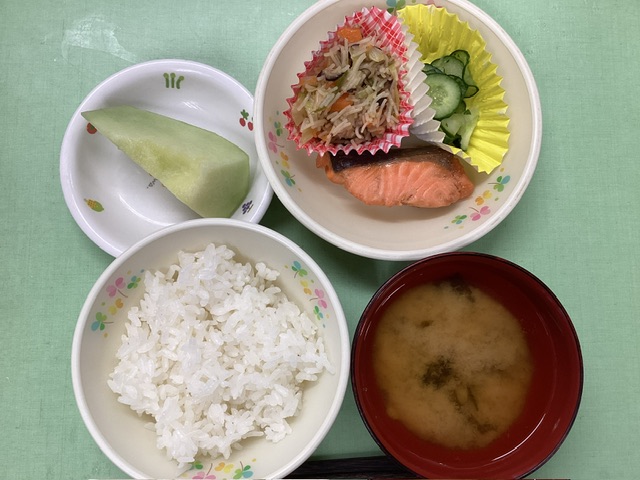 ホームきょうの給食 6/17 今日の給食 2024年6月17日 子どもたちが大好きな給食やおやつを毎日紹介しています! 【幼児食・乳児食】 昼食 ごはん みそ汁 さけのうめ焼き ビーフン炒め きゅうりの塩もみ メロン 3時のおやつ ジョア スープライス 10時のおやつ(乳児のみ) 牛乳