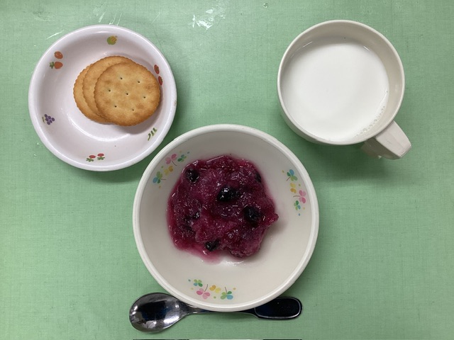 ホームきょうの給食 8/8 今日の給食 2024年8月8日 子どもたちが大好きな給食やおやつを毎日紹介しています! 【幼児食・乳児食】 昼食 夏野菜カレー雑穀ライス (つくし : 夏野菜カレーライス) (めだか・きんぎょ : ツナピラフ&ウインナー ) すまし汁 コンビネーションサラダ すいか 3時のおやつ 牛乳 ブルーベリーシャーベット クラッカー 10時のおやつ(乳児のみ) ジョア