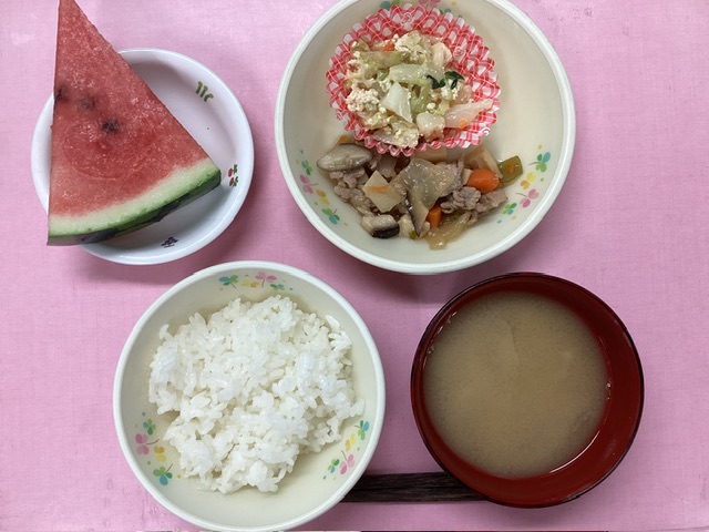 ホームきょうの給食 8/9 今日の給食 2024年8月9日 子どもたちが大好きな給食やおやつを毎日紹介しています! 【幼児食・乳児食】 昼食 ごはん みそ汁 酢豚 豆腐サラダ すいか 3時のおやつ 野菜ジュース トマトスープライス 10時のおやつ(乳児のみ) 牛乳