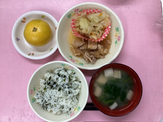 ホームきょうの給食 9/24 今日の給食 2024年9月24日2024年9月25日 子どもたちが大好きな給食やおやつを毎日紹介しています! 【幼児食・乳児食】 昼食 わかめごはん(非常用) みそ汁 蒸し豚のおろし和え 野菜ソテー みかん 3時のおやつ 牛乳 豆腐マフィン 10時のおやつ(乳児のみ) 野菜ジュース