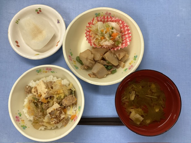 ホームきょうの給食 10/1 今日の給食 2024年10月1日 子どもたちが大好きな給食やおやつを毎日紹介しています! 【幼児食・乳児食】 昼食 豚すききび丼 すまし汁 里芋とベーコンの煮物 塩もみ野菜 梨 3時のおやつ 野菜ジュース にゅうめん 10時のおやつ(乳児のみ) 牛乳