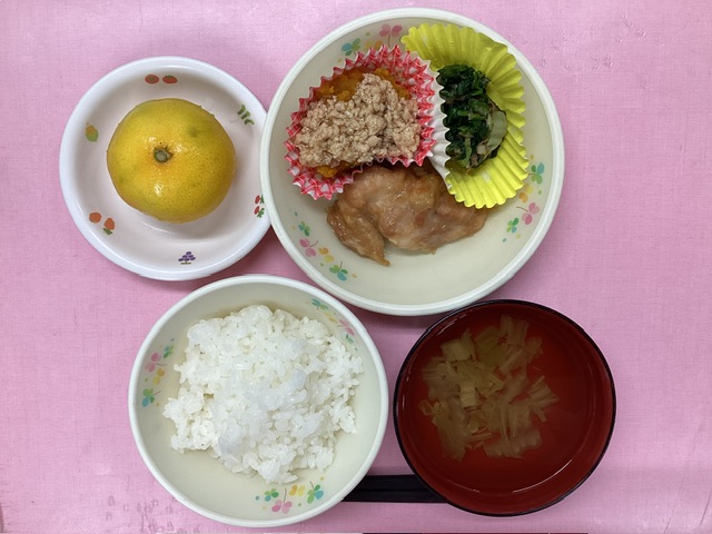 ホームきょうの給食 10/15 今日の給食 2024年10月15日 子どもたちが大好きな給食やおやつを毎日紹介しています! 【幼児食・乳児食】 昼食 ごはん すまし汁 からあげ かぼちゃのそぼろあん おひたし みかん 3時のおやつ 牛乳 焼きうどん ※メニュー変更 ち・た 焼きうどん→焼きそば 10時のおやつ(乳児のみ) 野菜ジュース
