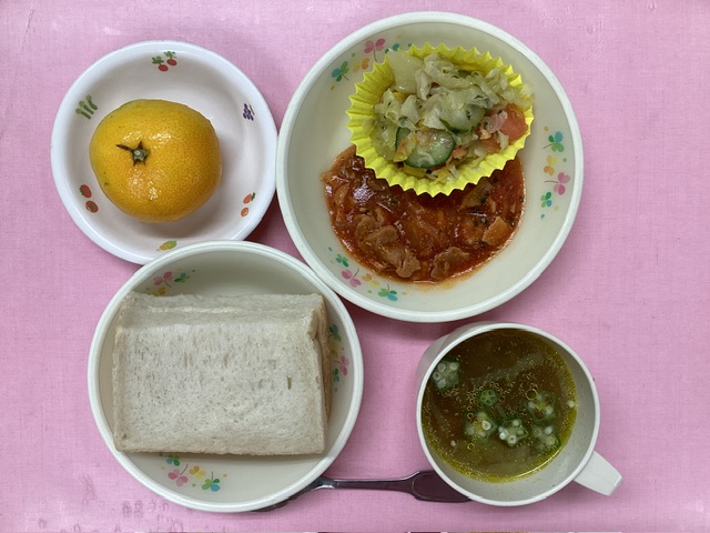 ホームきょうの給食 10/17 今日の給食 2024年10月17日 子どもたちが大好きな給食やおやつを毎日紹介しています! 【幼児食・乳児食】 昼食 バターサンド カレースープ ポークチャップ コンビネーションサラダ みかん 3時のおやつ 牛乳 鮭おにぎり ぬか漬け 10時のおやつ(乳児のみ) 牛乳