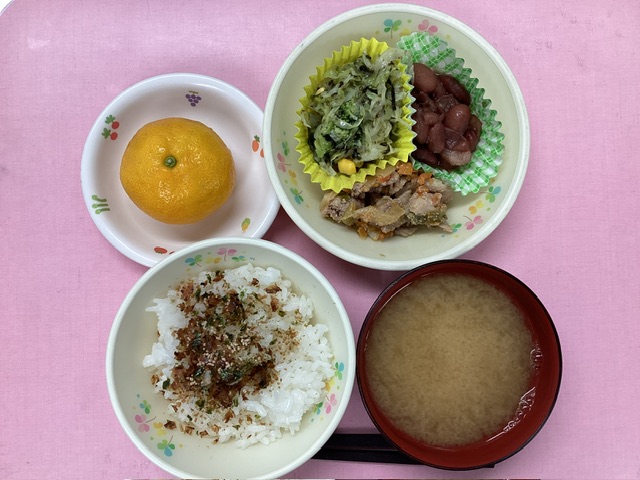 ホームきょうの給食 10/29 今日の給食 2024年10月29日 子どもたちが大好きな給食やおやつを毎日紹介しています! 【幼児食・乳児食】 昼食 ふりかけごはん みそ汁 ポークジンジャー チョレギサラダ 金時煮豆 みかん 3時のおやつ 牛乳 焼き芋 10時のおやつ(乳児のみ) ジョア