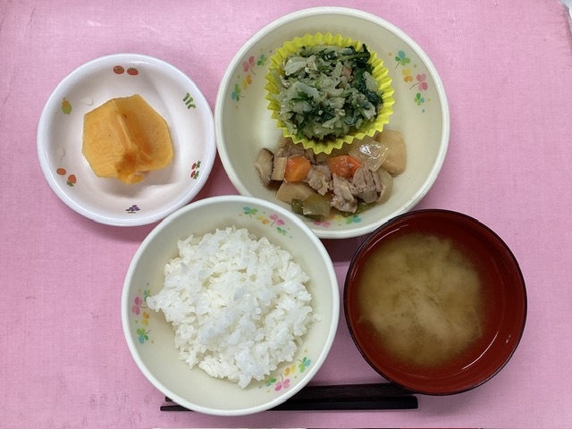 ホームきょうの給食 11/12 今日の給食 2024年11月12日 子どもたちが大好きな給食やおやつを毎日紹介しています! 【幼児食・乳児食】 昼食 ごはん みそ汁 酢豚 切り干し大根のサラダ 柿 3時のおやつ ジョア わかめうどん 10時のおやつ(乳児のみ) 牛乳