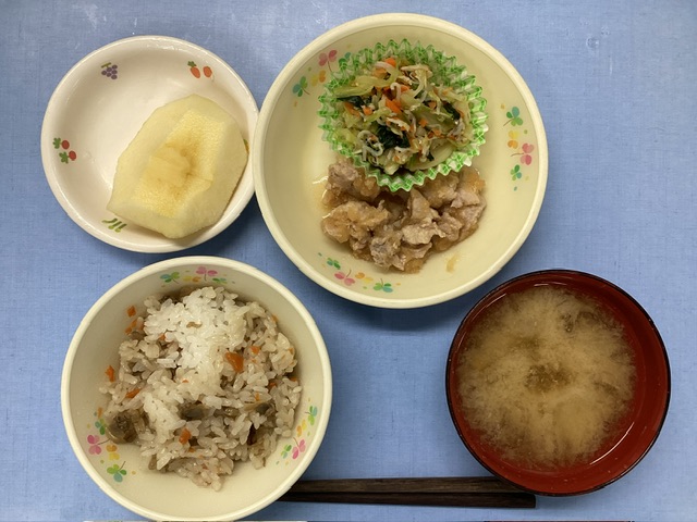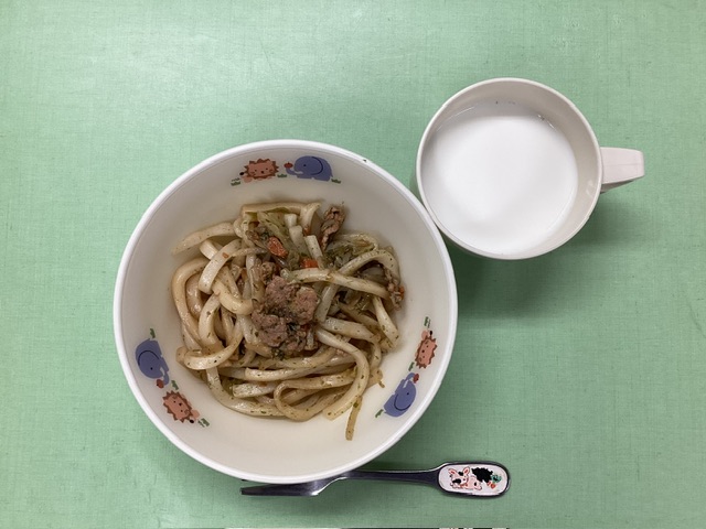 ホームきょうの給食 12/13 今日の給食 2024年12月13日 子どもたちが大好きな給食やおやつを毎日紹介しています! 【幼児食・乳児食】 昼食 深川めし みそ汁 蒸し豚のおろし和え じゃこサラダ りんご 3時のおやつ 牛乳 焼きうどん 10時のおやつ(乳児のみ) 牛乳