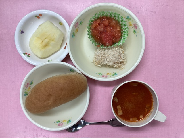ホームきょうの給食 12/19 今日の給食 2024年12月19日 子どもたちが大好きな給食やおやつを毎日紹介しています! 【幼児食・乳児食】 昼食 玄米パン ミネストローネ かじきのパン粉焼き トマトサラダ りんご 3時のおやつ 野菜ジュース 鶏みそぞうすい 10時のおやつ(乳児のみ) 牛乳