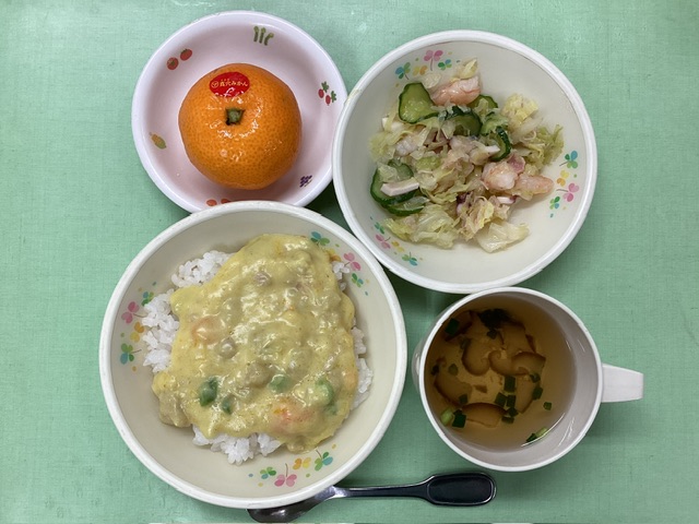 ホームきょうの給食 12/20 今日の給食 2024年12月20日 子どもたちが大好きな給食やおやつを毎日紹介しています! 【幼児食・乳児食】 昼食 かぼちゃ入りカレー麦ライス (め・き:かぼちゃ入りピラフ) すまし汁 シーフードサラダ みかん 3時のおやつ 牛乳 小町麩スナック 10時のおやつ(乳児のみ) 野菜ジュース
