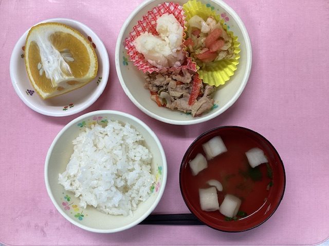 ホームきょうの給食 4/5 今日の給食 2024年4月5日 子どもたちが大好きな給食やおやつを毎日紹介しています! 【幼児食・乳児食】 昼食 ごはん すまし汁 チンジャオロース 粉ふき芋 キャベツの中華和え 甘夏 3時のおやつ 牛乳 カルピスゼリー おせんべい 10時のおやつ(乳児のみ) 牛乳