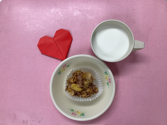 ホームきょうの給食 2/14 今日の給食 2025年2月14日2025年2月15日 子どもたちが大好きな給食やおやつを毎日紹介しています! 【幼児食・乳児食】 昼食 わかめごはん すまし汁 ホイコーロー 粉ふき芋 トマト はっさく 3時のおやつ 牛乳 ココアマシュマロフレーク 10時のおやつ(乳児のみ) 牛乳