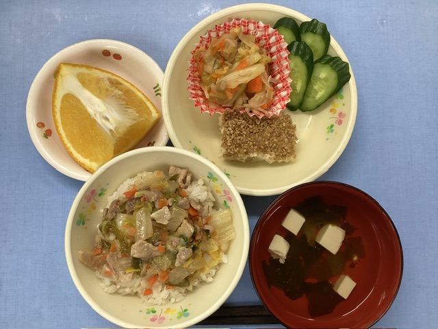 ホームきょうの給食 3/7 今日の給食 2025年3月7日 子どもたちが大好きな給食やおやつを毎日紹介しています! 【幼児食・乳児食】 昼食 中華麦丼 (乳:中華丼) すまし汁 松風焼き 野菜ソテー ぬか漬け 甘夏 3時のおやつ 牛乳 干し芋 10時のおやつ(乳児のみ) 野菜ジュース