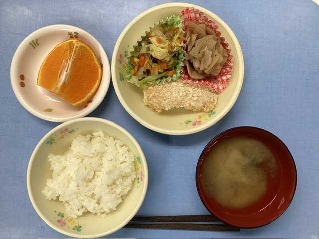 ホームきょうの給食 4/11 今日の給食 2025年4月11日 子どもたちが大好きな給食やおやつを毎日紹介しています! 【幼児食・乳児食】 昼食 ごはん みそ汁 かれいのパン粉焼き 豚肉れんこん キャベツの昆布和え デコポン 3時のおやつ ジョア チキンフォー 10時のおやつ(乳児のみ) 牛乳