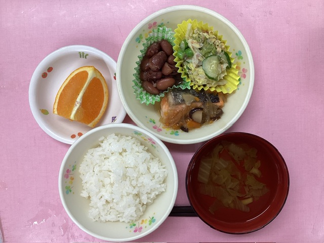ホームきょうの給食 4/15 今日の給食 2025年4月15日 子どもたちが大好きな給食やおやつを毎日紹介しています! 【幼児食・乳児食】 昼食 ごはん すまし汁 鮭のあんかけ 金時煮豆 洋風おかか和え オレンジ 3時のおやつ ジョア にゅうめん 10時のおやつ(乳児のみ) 牛乳