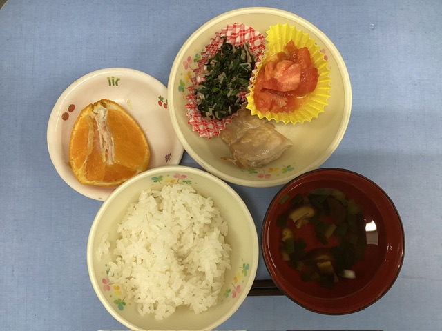 ホームきょうの給食 5/21 今日の給食 2025年5月21日 子どもたちが大好きな給食やおやつを毎日紹介しています! 【幼児食・乳児食】 昼食 ごはん すまし汁 鶏肉のみそ焼き トマトサラダ 磯辺和え デコポン 3時のおやつ 牛乳 信玄マカロニ 10時のおやつ(乳児のみ) 牛乳