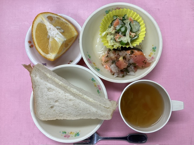 ホームきょうの給食 5/22 今日の給食 2025年5月22日 子どもたちが大好きな給食やおやつを毎日紹介しています! 【幼児食・乳児食】 昼食 バターサンド ベジタブルスープ 鮭のマリネ アスパラサラダ 甘夏 3時のおやつ 牛乳 和風ツナごはん 10時のおやつ(乳児のみ) ジョア