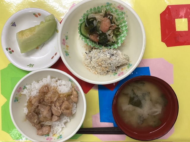 ホームきょうの給食 6/6 今日の給食 2025年6月6日 子どもたちが大好きな給食やおやつを毎日紹介しています! 【幼児食・乳児食】 昼食 やきとり麦丼 (乳:やきとり丼) みそ汁 ひじきスコップコロッケ 和風サラダ メロン 3時のおやつ 牛乳 マシュマロフレーク 10時のおやつ(乳児のみ) 牛乳