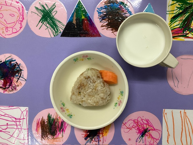 ホームきょうの給食 6/11 今日の給食 2025年6月11日 子どもたちが大好きな給食やおやつを毎日紹介しています! 【幼児食・乳児食】 昼食 ハムピラフ コンソメスープ 魚のステーキソース グリーンサラダ すいか 3時のおやつ 牛乳 切り干し大根おにぎり ぬか漬け 10時のおやつ(乳児のみ) 野菜ジュース