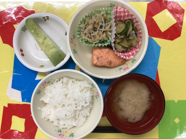 ホームきょうの給食 7/15 今日の給食 2025年7月15日 子どもたちが大好きな給食やおやつを毎日紹介しています! 【幼児食・乳児食】 昼食 ごはん みそ汁 鮭の梅焼き ビーフンの炒め物 夏野菜和え メロン 3時のおやつ 牛乳 焼きうどん 10時のおやつ(乳児のみ) 牛乳