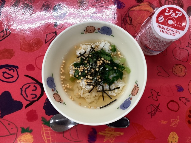 ホームきょうの給食 7/17 今日の給食 2025年7月17日 子どもたちが大好きな給食やおやつを毎日紹介しています! 【幼児食・乳児食】 昼食 クロワッサン 冬瓜のスープ かじきのコーンフレーク焼き ラタトゥユ メロン 3時のおやつ ジョア お茶漬け 10時のおやつ(乳児のみ) 牛乳