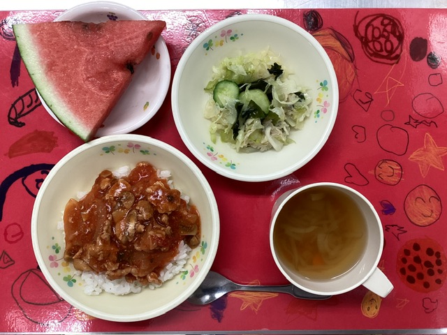 ホームきょうの給食 8/14 今日の給食 2025年8月14日 子どもたちが大好きな給食やおやつを毎日紹介しています! 【幼児食・乳児食】 昼食 ごはん ベジタブルスープ ポークチャップ ホタテサラダ すいか 3時のおやつ 牛乳 信玄マカロニ 10時のおやつ(乳児のみ) 野菜ジュース