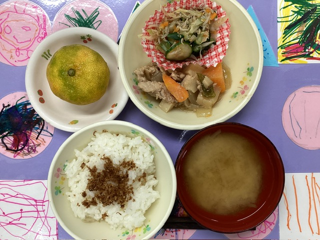 ホームきょうの給食 9/3 今日の給食 2025年9月3日 子どもたちが大好きな給食やおやつを毎日紹介しています! 【幼児食・乳児食】 昼食 おかかごはん みそ汁 酢豚 じゃこサラダ みかん 3時のおやつ 牛乳 ココアマシュマロフレーク 10時のおやつ(乳児のみ) 牛乳