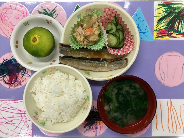 ホームきょうの給食 10/1 今日の給食 2025年10月1日 子どもたちが大好きな給食やおやつを毎日紹介しています! 【幼児食・乳児食】 昼食 ごはん みそ汁 秋刀魚の蒲焼 ほっこり白和え 胡瓜の塩もみ みかん 3時のおやつ 牛乳 りんごゼリー クラッカー 10時のおやつ(乳児のみ) 牛乳