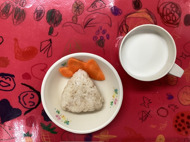ホームきょうの給食 10/23 今日の給食 2025年10月23日 子どもたちが大好きな給食やおやつを毎日紹介しています! 【幼児食・乳児食】 昼食 クロワッサン トマトスープ かじきのBBQソース ミックスサラダ みかん 3時のおやつ 牛乳 甘みそおにぎり ぬか漬け 10時のおやつ(乳児のみ) 牛乳