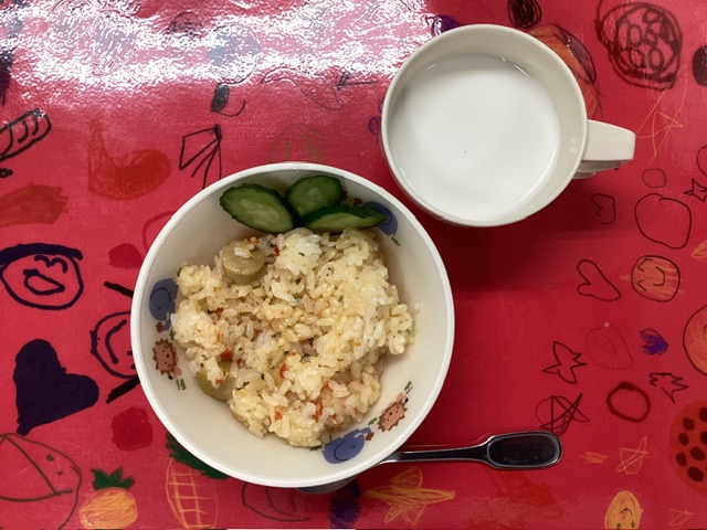 ホームきょうの給食 12/4 今日の給食 2025年12月4日 子どもたちが大好きな給食やおやつを毎日紹介しています! 【幼児食・乳児食】 昼食 もち粉パン カレースープ 魚のフライ きのこのアヒージョ みかん 3時のおやつ 牛乳 スパイスごはん ぬか漬け 10時のおやつ(乳児のみ) ジョア