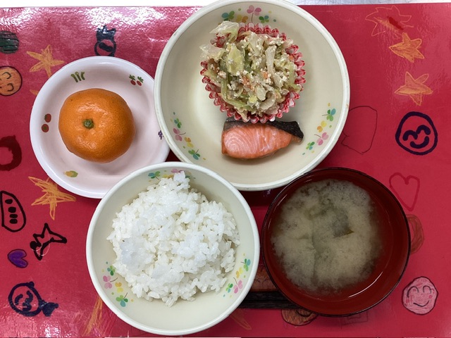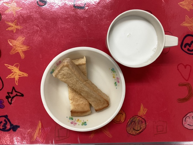 ホームきょうの給食 12/8 今日の給食 2025年12月8日 子どもたちが大好きな給食やおやつを毎日紹介しています! 【幼児食・乳児食】 昼食 ごはん みそ汁 焼き魚 豆腐サラダ みかん 3時のおやつ 牛乳 メープルトースト 10時のおやつ(乳児のみ) 野菜ジュース
