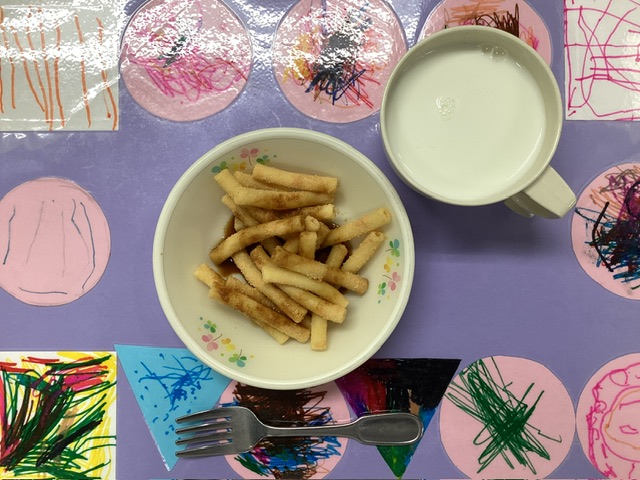 ホームきょうの給食 12/10 今日の給食 2025年12月10日 子どもたちが大好きな給食やおやつを毎日紹介しています! 【幼児食・乳児食】 昼食 ごはん 田舎汁 魚のステーキソース 洋風おかか和え みかん 3時のおやつ 牛乳 信玄マカロニ 10時のおやつ(乳児のみ) ジョア