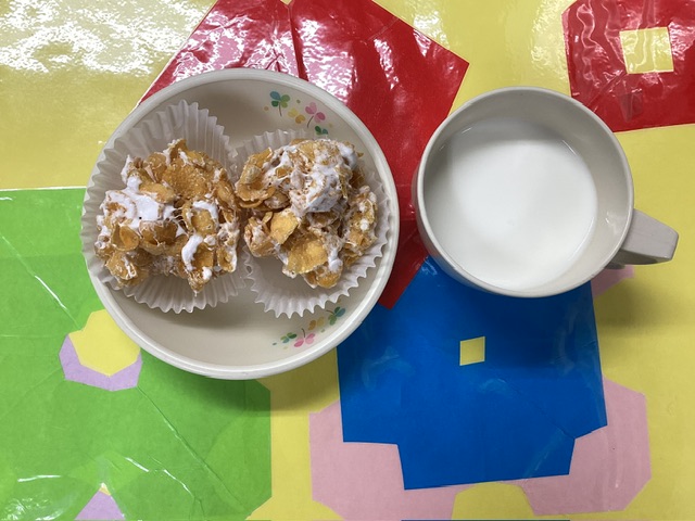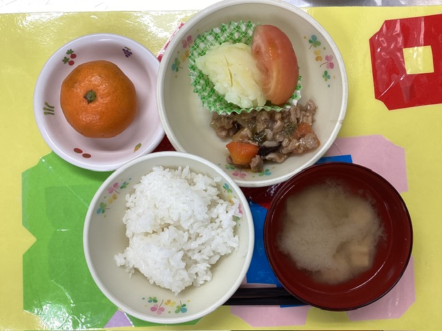 ホームきょうの給食 1/16 今日の給食 2026年1月16日 子どもたちが大好きな給食やおやつを毎日紹介しています! 【幼児食・乳児食】 昼食 ごはん みそ汁 酢豚 粉ふき芋 トマト みかん 3時のおやつ 牛乳 マシュマロフレーク 10時のおやつ(乳児のみ) ジョア