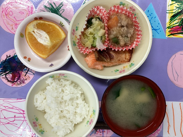 ホームきょうの給食 2/18 今日の給食 2026年2月18日 子どもたちが大好きな給食やおやつを毎日紹介しています! 【幼児食・乳児食】 昼食 ごはん みそ汁 鮭の塩こうじ焼き 肉じゃが 手もみ野菜 いよかん 3時のおやつ 牛乳 干し芋 10時のおやつ(乳児のみ) 牛乳