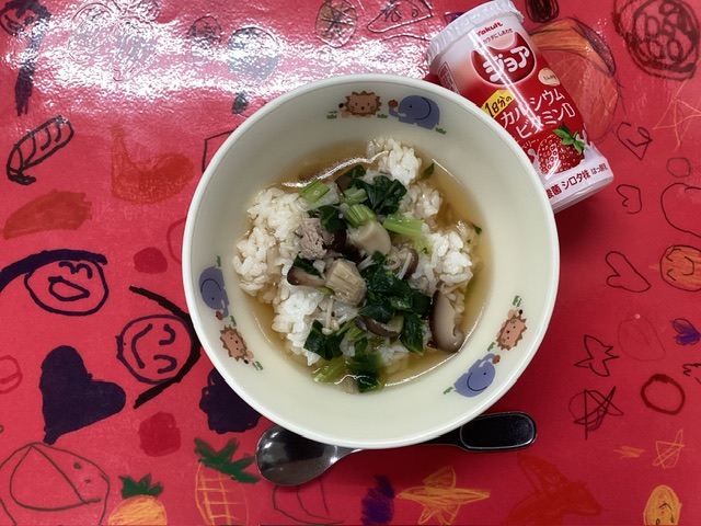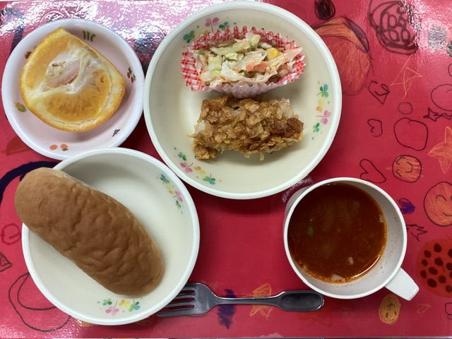 ホームきょうの給食 2/26 今日の給食 2026年2月26日 子どもたちが大好きな給食やおやつを毎日紹介しています! 【幼児食・乳児食】 昼食 おさつパン トマトスープ かじきのコーンフレーク焼き コールスローサラダ いよかん 3時のおやつ ジョア きのこ雑炊 10時のおやつ(乳児のみ) 牛乳